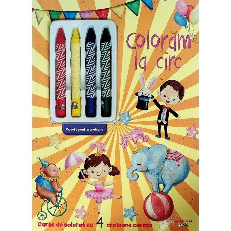 Coloram la circ. Carte de colorat cu 4 creioane cerate de la LITERA INTERNATIONAL