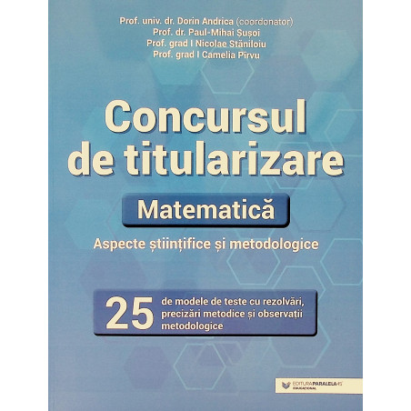Consideram ca lucrarea de fata reprezinta un instrument util in pregatirea acestui examen important pentru viitorul unui profesor de matematica. Ea acopera in mare masura matematica de baza din programa pentru concurs, atat prin modelele de subiecte, cat si prin aspectele metodice aferente acestora.