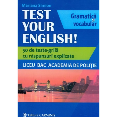Test Your English! 50 de teste-grila cu raspunsuri explicate. Liceu. Bac. Academia de Politie de la CARMINIS