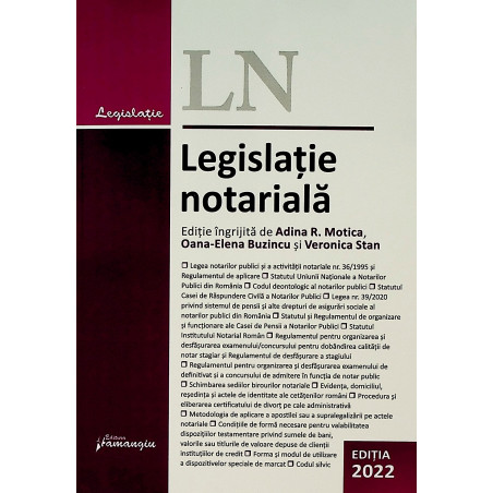 Lucrarea Legislatie notariala a fost conceputa ca un instrument de baza, de informare si de orientare intr-un domeniu aflat intr-o continua crestere, formare si transformare.