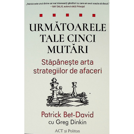 Urmatoarele tale cinci mutari: Stapaneste arta strategiilor de afaceri / Your Next Five Moves: Master the Art of Business Strategy de Patrick Bet-David cu Greg Dinkin face o analogie intre sah si afaceri si te invata sa abordezi afacerile, asa cum abordezi o partida de sah. Dar cartea aceasta nu este catusi de putin despre sah. Cartea de fata este 100% despre afaceri si iti va furniza cateva strategii pe care, probabil, vei dori sa le implementezi cat de curand si in afacerea ta.