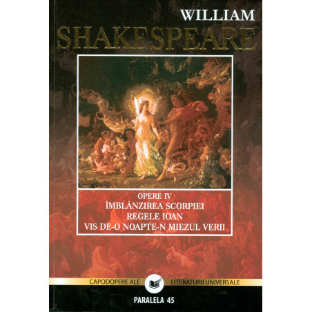 Volumul de fata reuneste trei creatii shakespeariene scrise, probabil, in intervalul 1592-1596. Diversitatea tematica si modul radical diferit de concepere a personajelor si intrigii din Imblanzirea scorpiei, Regele Ioan si Vis de-o noapte-n miezul verii combat orice tentativa academica de `clasificare` a operei Marelui Will in perioade de creatie distincte, tributare unor mode, tendinte, orientari sau, de-a dreptul, influente externe. Daca Imblanzirea scorpiei, cu actiunea plasata in Italia re-nascentista, ramane unul din cele mai celebre episoade din `batalia dintre sexe` din intreaga literatura universala, Vis de-o noapte-n miezul verii - pandantul comic al piesei tarzii Doi veri de stirpe aleasa-, cu actiunea plasata in Atena, in timpul domniei mitologicului erou Tezeu, ne infatiseaza mai mult decat o batalie intre sexe (la nivel uman si supra-uman), aducand in prim-plan si conflictul dintre generatii - conflict consumat si rezolvat intr-o lume pana la urma imaginara, ce combina mitologia elina cu folclorul celtic si realitatea lumii elisabetane. In fine, Regele Ioan, aidoma tuturor pieselor-cronici shakespeariene, ne ofera o radiografie a luptei pentru putere de la inceputul indepartatului secol al XIII-lea, cu aluzii transparente la evenimente din ultimii ani de domnie ai Elisabetei I.